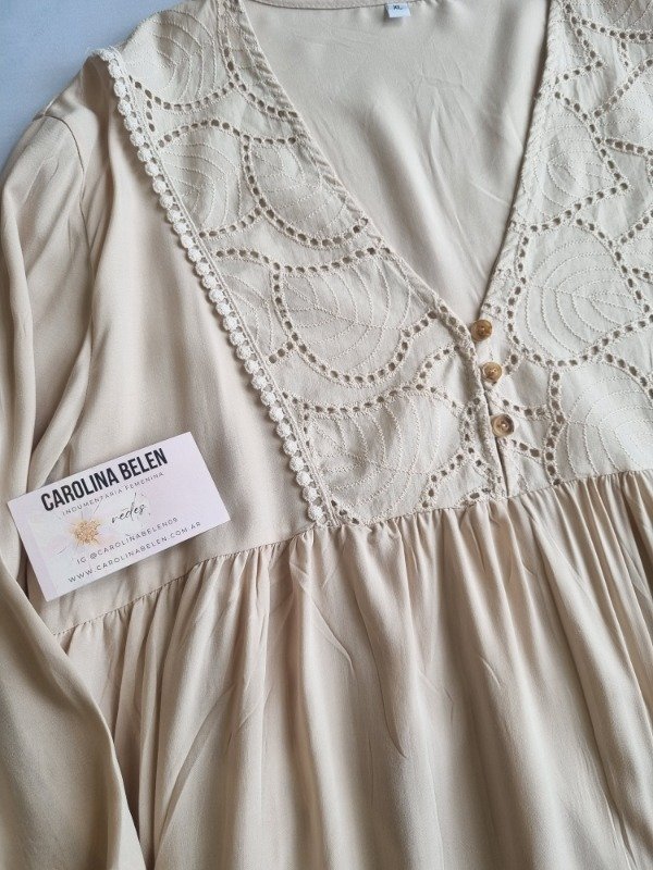 Blusa suelta de fibrana con broderi, talle amplio