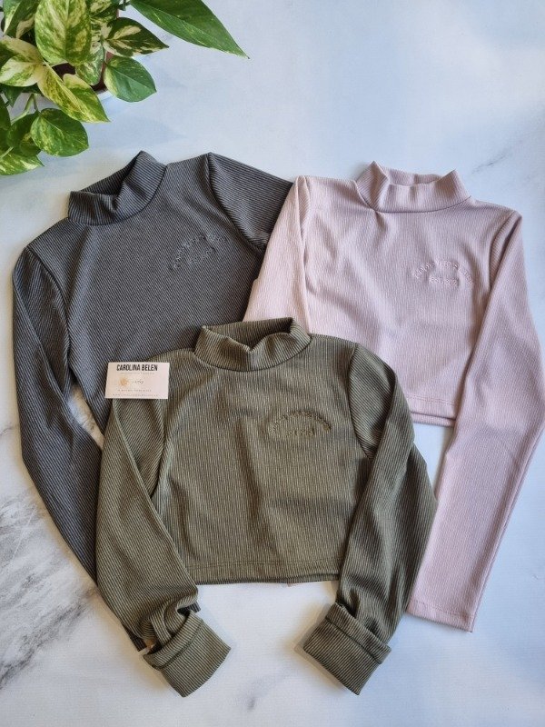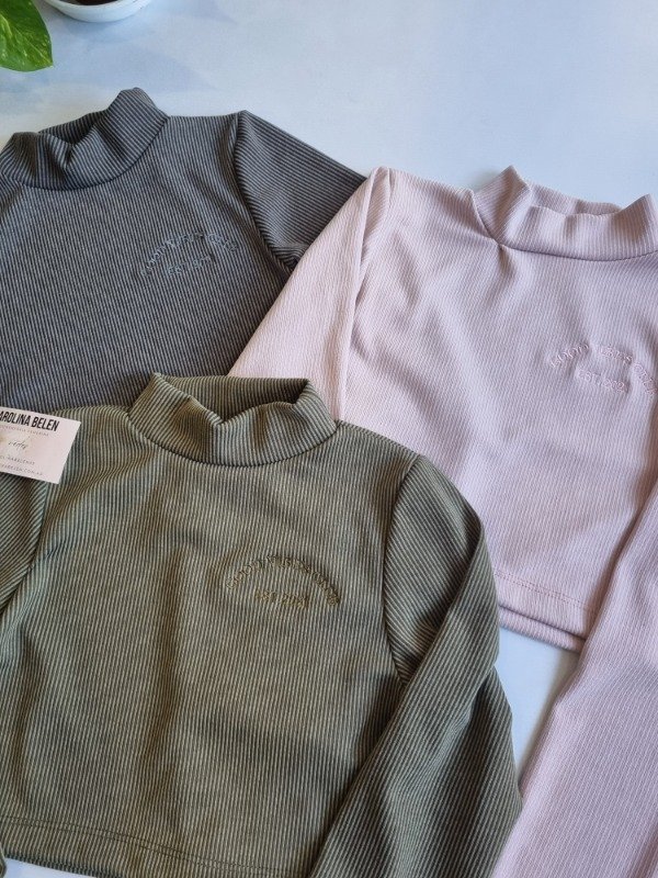 Media polera de morley bordadas, modelo crop top. Talle unico