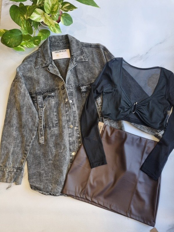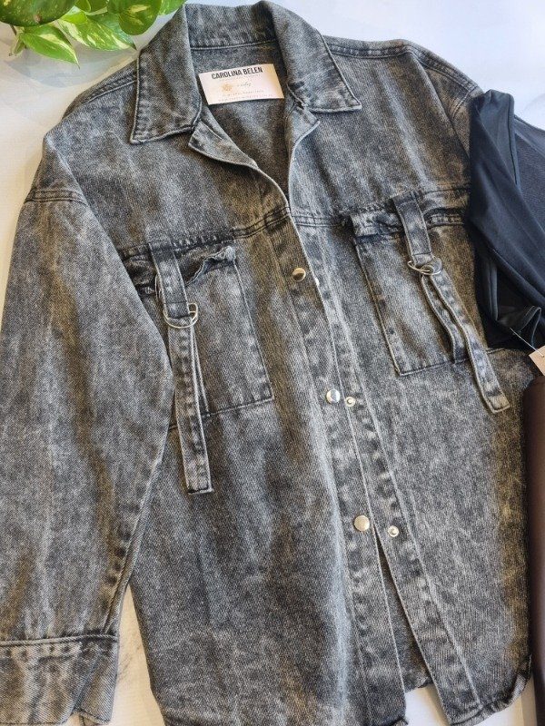 Camisaco de jeans modelo cargo, talle super amplio