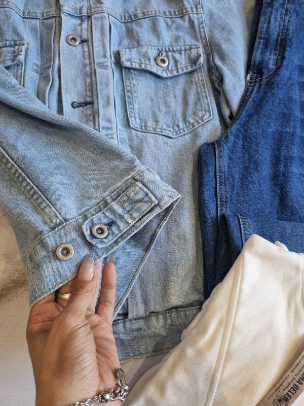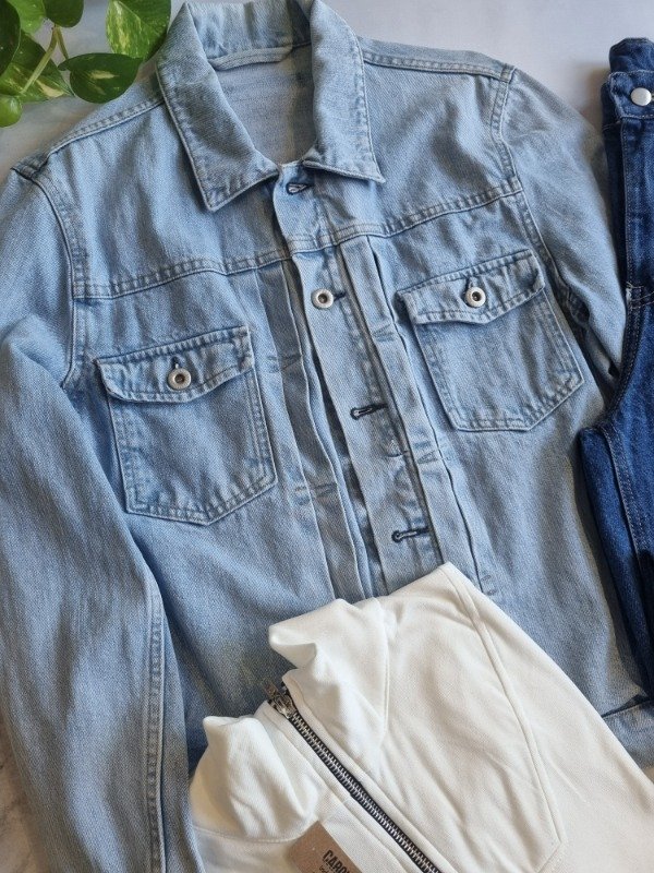Campera de jean rigido talle M/L larguita. Con bolsillos
