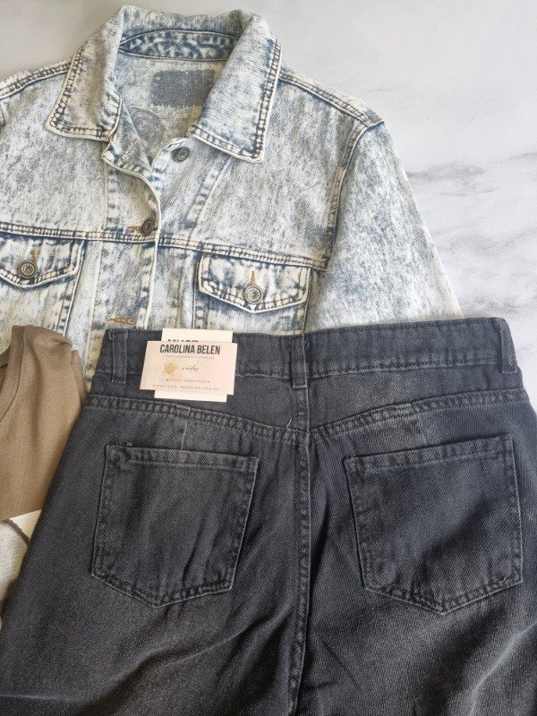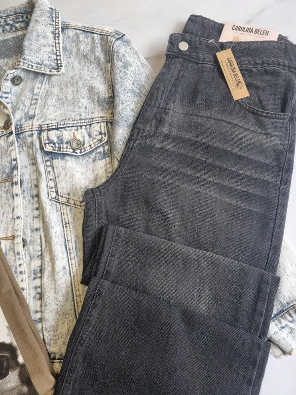 Jeans recto bigoteado gris intenso. Rigido. Talle 40 amplio va para uno mas