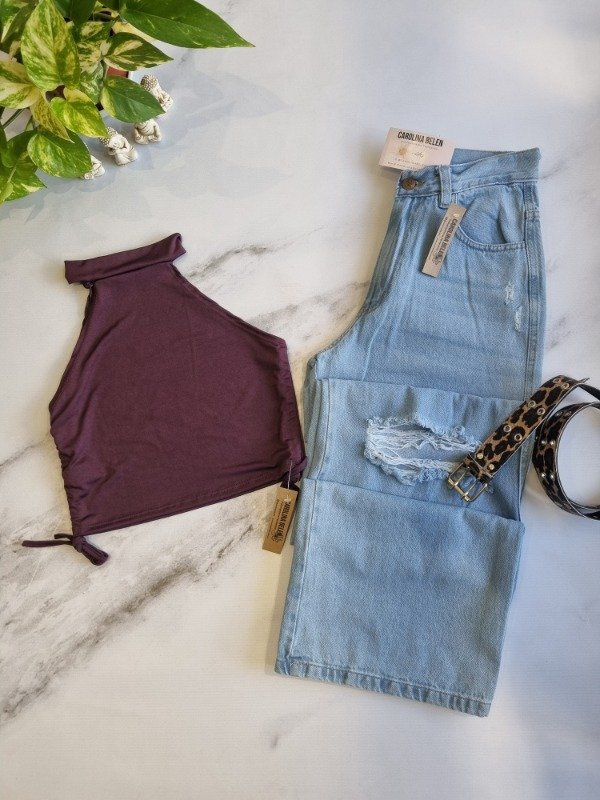 Wide leg rigido celeste con roturas