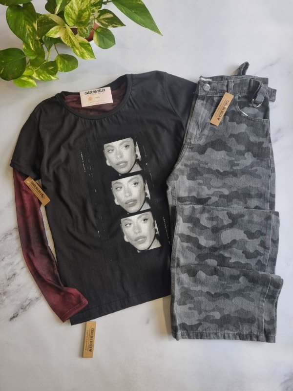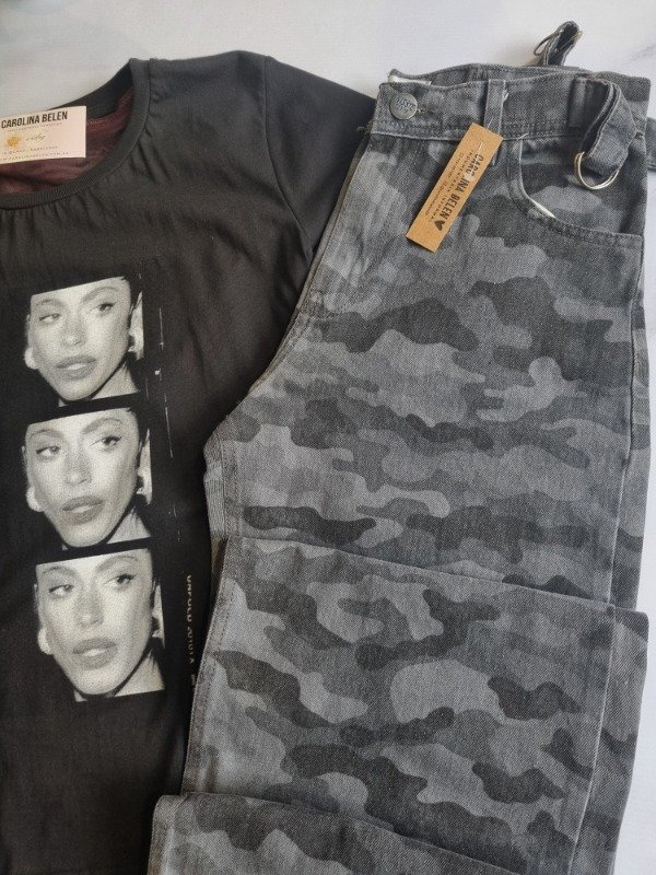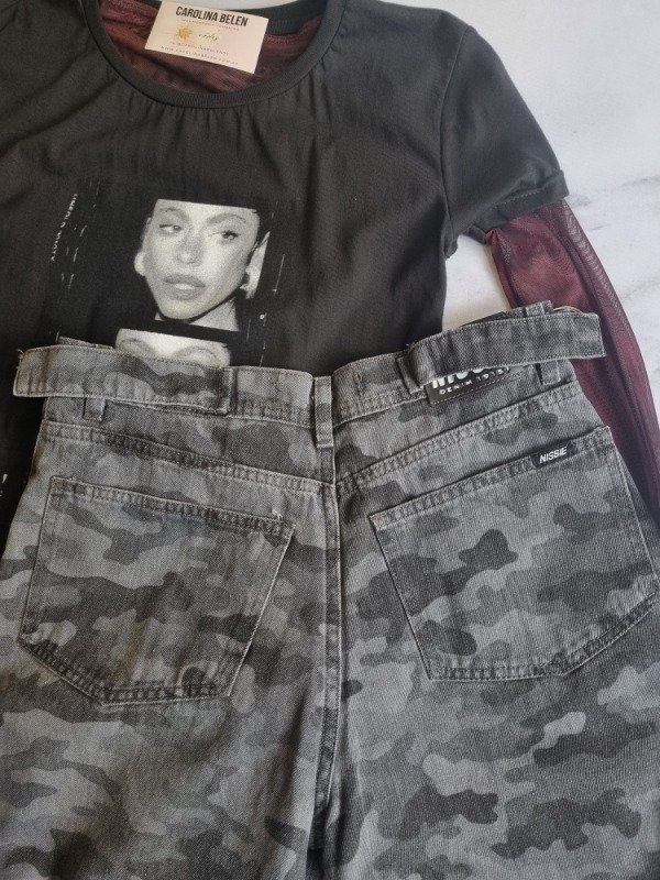 Wide leg nissie camuflado con ajustable en la cintura. Rigido.