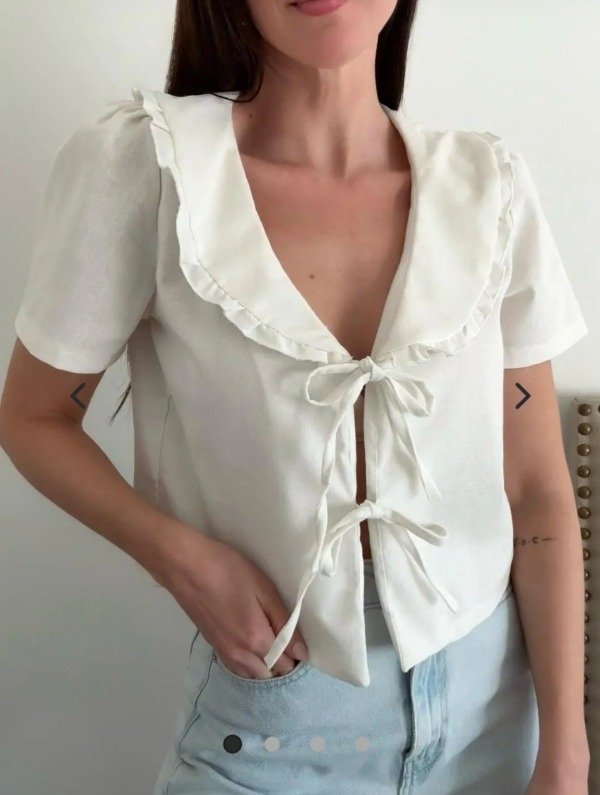 Blusa de lino doble tela con tiritas para atar, talle unico amplio (hasta un 4)