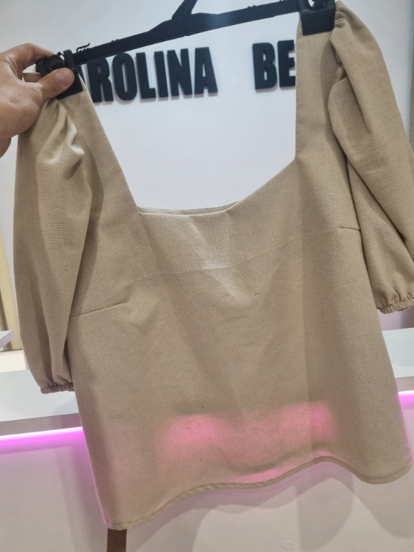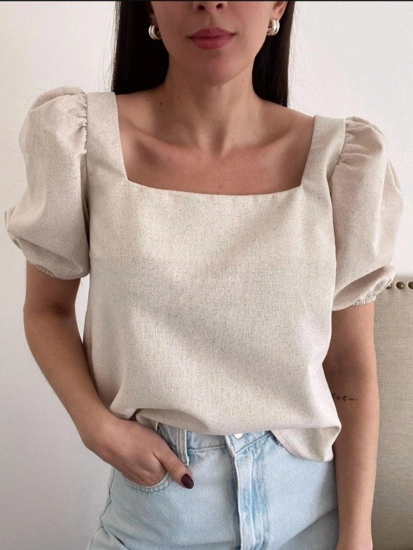 Blusa de lino doble, escote cuadrado mangas princesa. Talle unico amplio (hasta 4)