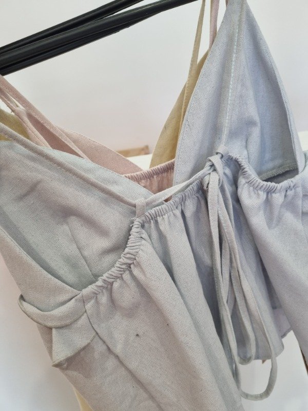 Blusita triangulo de lino, talle unico, con tiras regulables atras