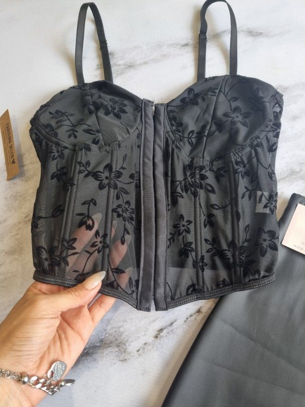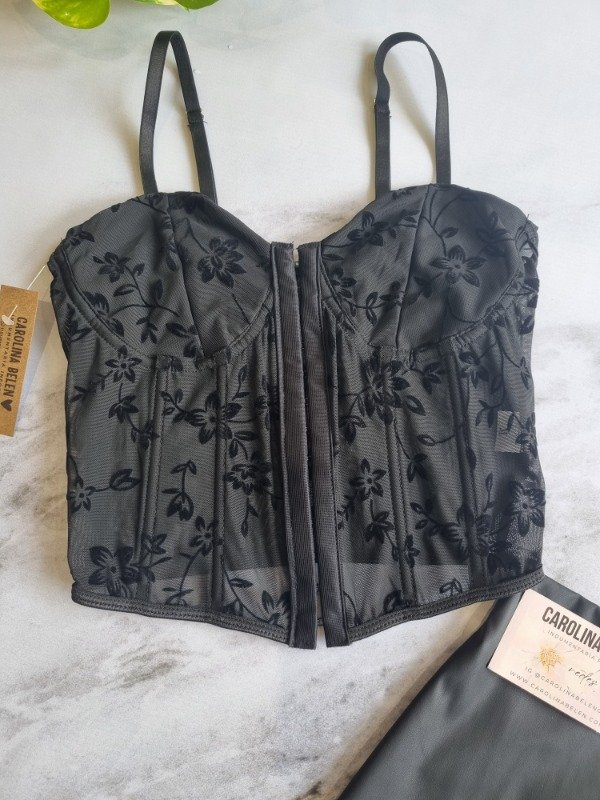 Coset de tul con ballenita, ganchitos delanteros. Talle M (90/95)