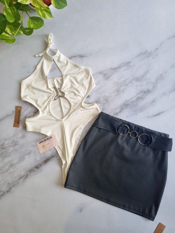 Mini engomada con cinto de aros, talle unico
