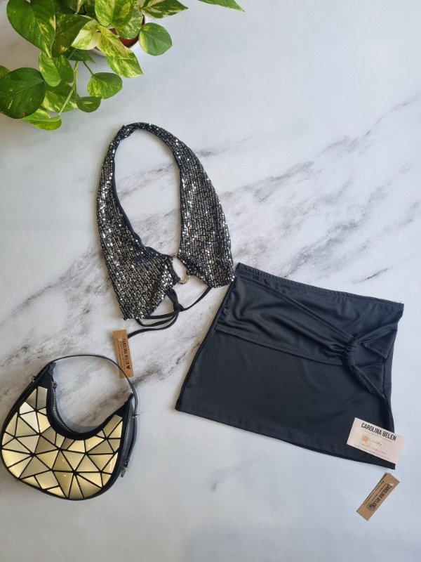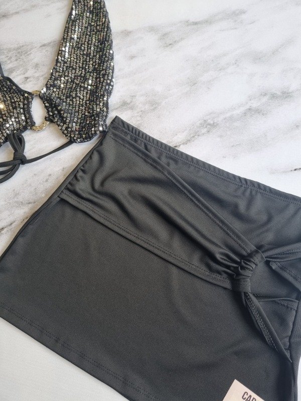 Mini de microfibra con frunce delantero irregular, talle unico