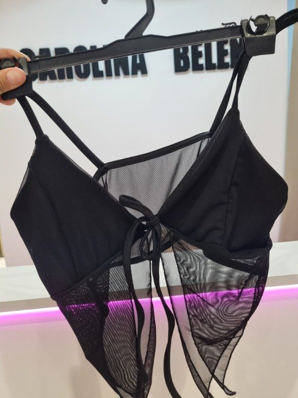 Top triangulo con tira para atar y tul, talle unico