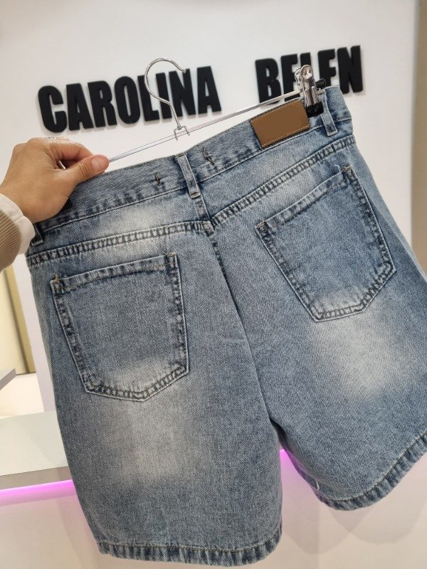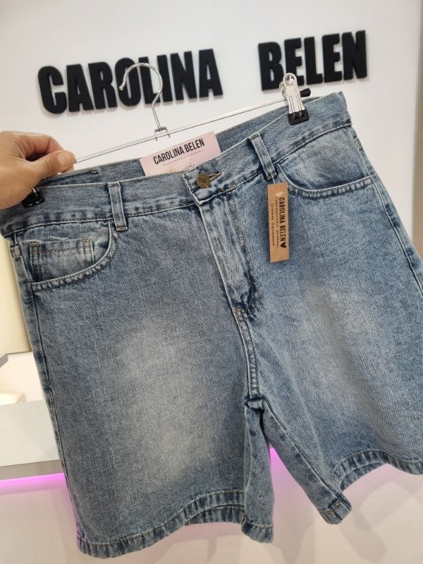 Bermuda rigida lisa con bolsillos. Modelo arriba de las rodillas