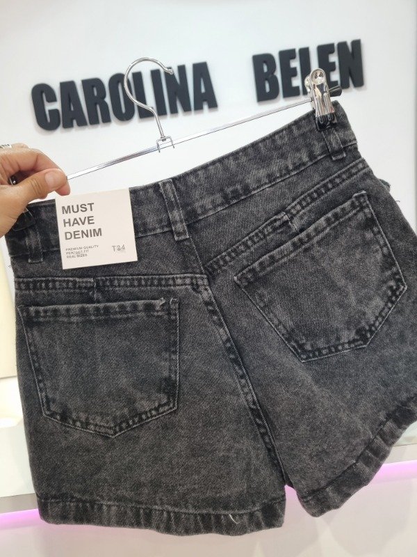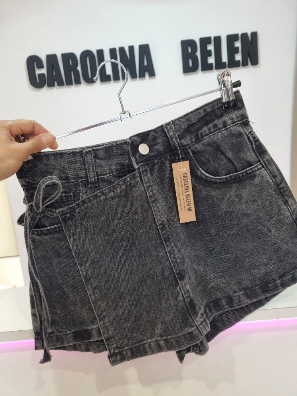 Short pollera rigido gris con lazo y bolsillos